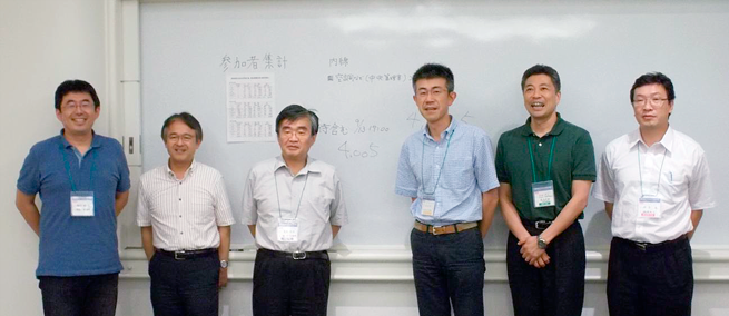それでも,事前の登録者はなかなか伸びない.あとは当日参加者が増えることを期待するしかない,となった.しかし,この年の夏は平均気温の記録を更新するほど極端に暑く,猛暑が9月上旬まで続き,参加者は例年より大きく下回るのではないかと心配された.しかし,大会開催直前の9月10日過ぎになって急に秋らしい爽やかな気候となったことが大きく影響したのではないだろうか.多くの当日参加者を得ることができ,結果的には当日は大きなトラブルもなく,4,000人を超す参加を得られ,例年と遜色ない大会とすることができた.大会終了直後には台風18号が関東地区を襲い大荒れの天気となったので,私たちは本当に運が良かったと胸を撫で下ろしたものだ.当時一緒に準備してもらった大会幹事や幹事補佐の先生方[宮澤恵二先生(山梨大学),武田弘資先生(長崎大学),反町洋之先生(東京都医学総合研究所),伊東進先生(昭和薬科大学),渡部徹郎先生(東京薬科大学),以下,所属は当時]には,言葉では言い尽くせないほど感謝している(図2).経費削減のために幹事・幹事補佐の先生の研究室員の皆様には大会当日に手伝ってもらった.懇親会には東大医学部の高岡真梨子さんら鉄門ピアノの会の学生さんに演奏をしてもらうなど,まさに手作りの大会運営だったといえる.大会事務局を置かせてもらった株式会社エー・イー企画の皆様にも深く感謝したい.