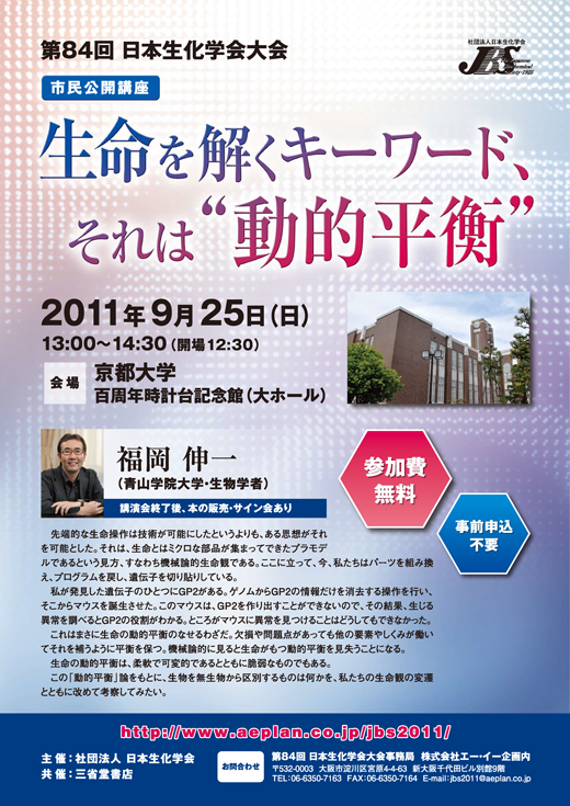 第84回日本生化学会大会からみえてきたもの~生物種を越えて,Unity in Biochemistry~Learning from the history—2011 Kyoto