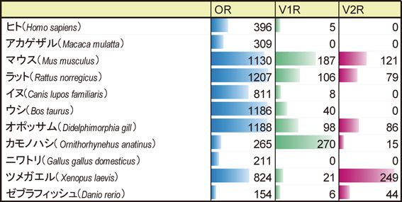 我々の日常はカレーライスやコーヒーのように香ばしく心惹かれる香りや,かび臭さのように遠ざけたくなるようなものまでさまざまな匂い分子に囲まれている.嗅覚はライフサイクルにおいて欠かすことのできない感覚の一つであり,外界に存在する多様な匂い分子(分子量約300以下の揮発性低分子化合物)は,鼻腔上部の嗅上皮(olfactory epithelium)の嗅神経細胞に存在する嗅覚受容体(olfactory receptor:OR)によって受容される.Gタンパク質共役型受容体(G protein-coupled receptor:GPCR)である嗅覚受容体の存在が知られるようになったのは,BuckとAxelが嗅覚受容体候補遺伝子のクローニングに成功した1991年にさかのぼり,彼らは2004年にノーベル医学生理学賞を受賞している1).同じく2004年に発表されたヒトゲノム配列からは嗅覚受容体の機能遺伝子として396個が同定されている2).嗅上皮には嗅覚受容体に加えて,微量アミン関連受容体(trace amine-associated receptor:TAAR)も発現しており,げっ歯類主嗅覚系におけるフェロモン受容体候補として知られている3).
